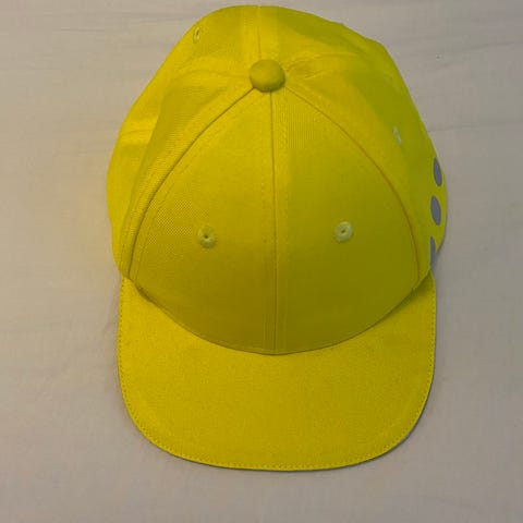 Aurinko lippa, kesäinen lippa hellekeleille. Takana kiristystarra eli käy hyvin monen kokoiseen päähän, kun sitä säätämällä voi pienentää ja isontaa.