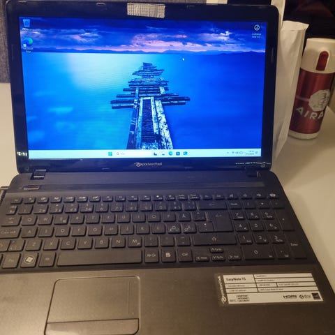 Acerin E1-510 peruskannettava jossa Windows 11 asennettuna. Akkukin toimii joten sopii vaikka auton diagnostiikkasofta käyttöön.
