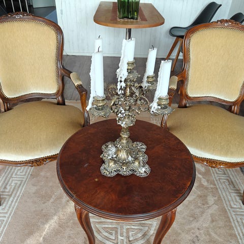 2 vanhaa tukevaa puutuolin "runkoa". Istuinosa puuttuu molemmista. Istumakorkeus 45 cm,selkänojan korkeus 95cm