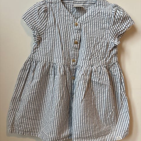 Vaaleansininen, raidallinen H&M-mekko. Kiva mekko arkeen ja juhlaan!