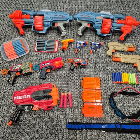 Kolme isoa, hyväkuntoista Nerf -pyssyä. Panoksia ei ole mukana. Myydään pakettina.