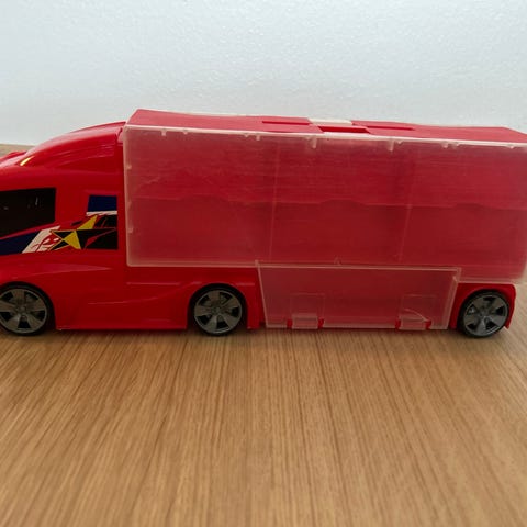 Toimiva kuljetus auto. Hytin kohdalla punainen nappula, jota painaa niin etuvalot vilkkuu ja tulee erilaisia ääniä.
