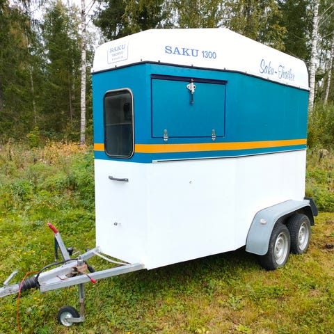 Hevoskuljetusvaunu perävaunu yhdelle hevoselle. Yksiakselinen malli, jossa takana laskettava lastaussilta ja ovi. Sisätila on suojattu vanerilla ja kumipohjalla. Vaunussa on perävalot ja rekisterikilven paikka takana. Sopii hevosen kuljettamiseen tai muuhun tavarankuljetukseen muokattuna.