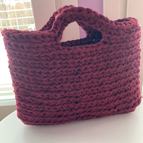 Virkattu olkalaukku, käsilaukku, kassi, uudenveroinen. Leveys 26cm, korkeus 23cm. Diy