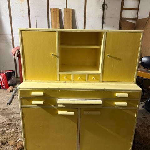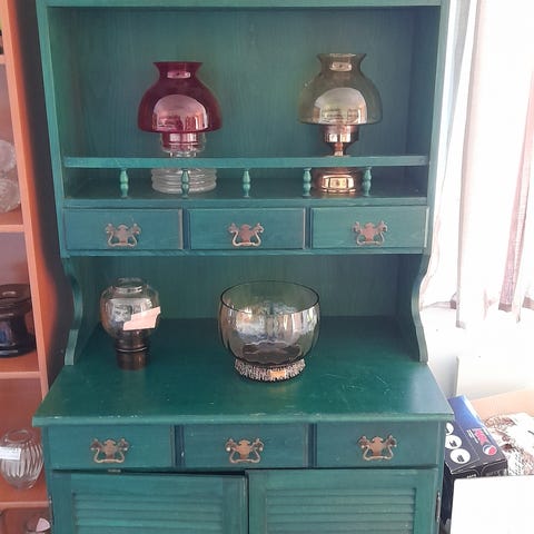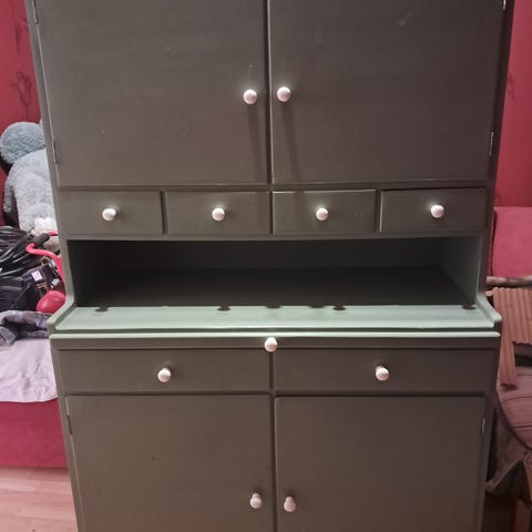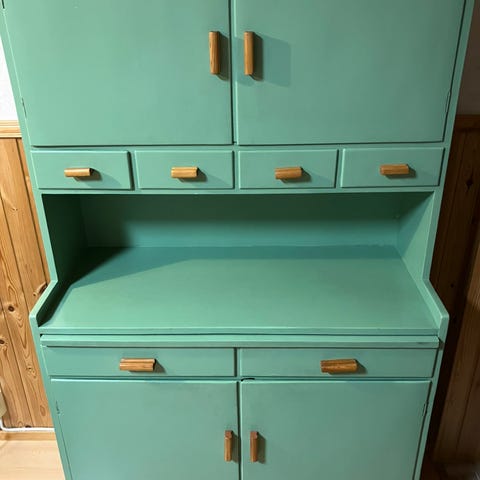 Myydään täyspuinen emännänkaappi. Maalattu muutama vuosi sitten Tikkurilan Neito-sävyllä ja liitutaulumaalilla.