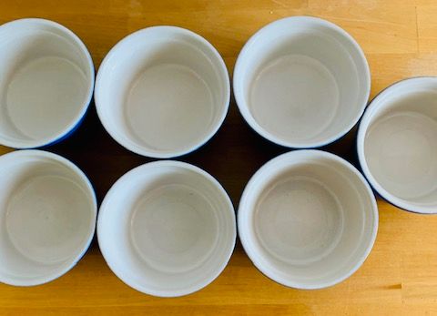 Kolme uunivuokaa puisessa tarjoilutelineessä. Kukin vuoka halkaisijaltaan 13cm, korkeus 6 cm. Mukana ohjekirjanen.