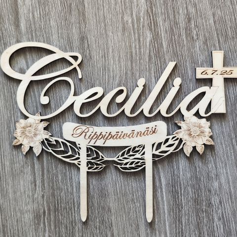 Myydään kaunis kultainen koivuvanerista valmistettu kakkukoriste. Numero 40.