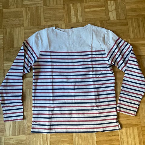 Ostin vahingossa tuliaiseksi paidan, jossa 3/4 hihat. Paita on kerrran sovitettu, laput kiinni, mustavalkoinen raitapaita, merkki Muji
