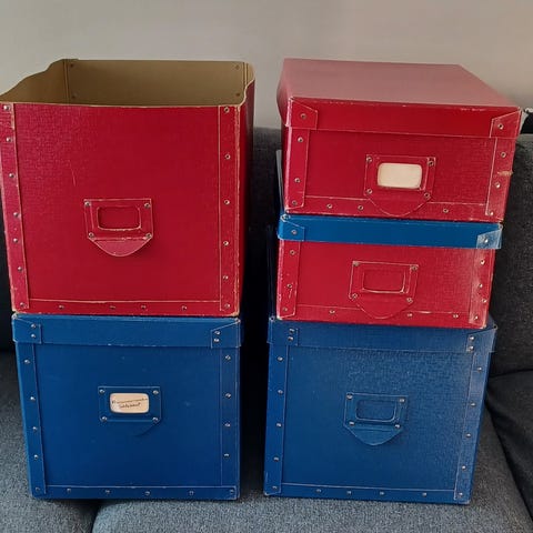 Kaksi vanhaa puista hedelmälaatikkoa, joita käytetty yöpöytinä. Päällä lasilevyt. Tukevat. Koko 50x30x28