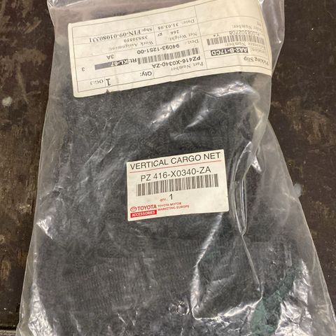 Myydään Toyotan uusi ja alkuperäinen lastiverkko, osanumero PZ435-E9340-ZA. Näitä löytyy kolme kappaletta, hinta yhdelle kappaleelle. Sopivuus: toyota avensis (2008 - 2018) (farkku).