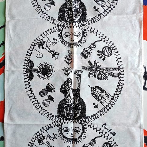 Australia-aiheinen tuliais 70-luvun keittiöpyyhe. Voi myös laittaa seinälle. Koko 76x52cm. Pellavaa.