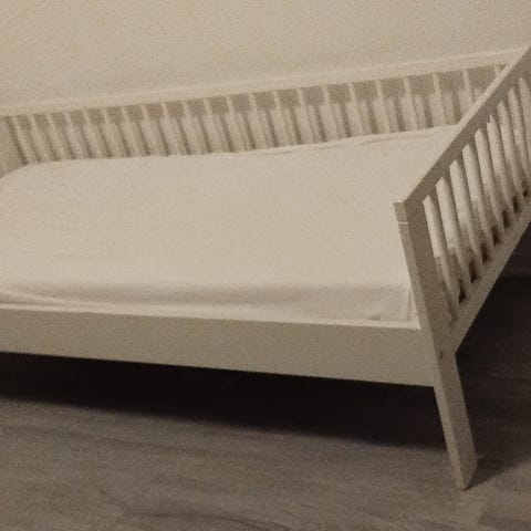 Valkoiseksi maalattu, hyväkuntoinen Ikean Sniglar juniorsänky.