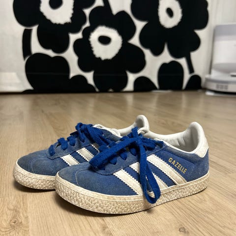 Vielä hyväkuntoiset kivat lenkkarit seuraavalle. Yleisilme siisti, vaikka tummentumia ja rispaantumista paikoin löytyy. Hyvä ok kunto. Kantapäät ja sisäosat ehjät.