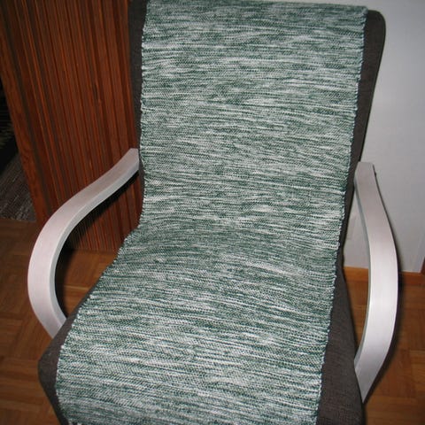Myydään l uusia, käsin kudottuja, harmaasävyisiä keinutuolin tai nojatuolin mattoja. Matojen leveys on 43cm ja pituudet 174, cm. Kuvion sävy tumma roosa ja valkoinen. Hinta 140euroa kappaleelta.