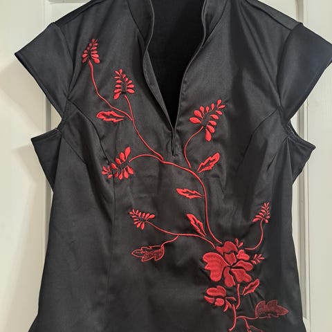 Myydään kerran ollut päällä oleva tummansininen toppi. Pitempää mallia, A- linjainen. Vastaa pienempää kokoa,kun 44/46.