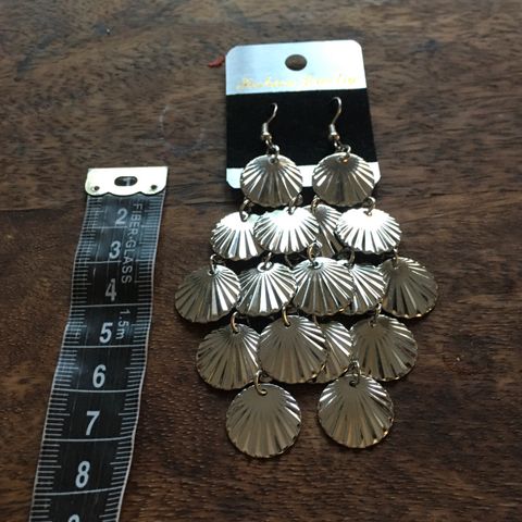 Hopean väriset pyöreät korvakorut jossa simpukkamaiset koristeet.