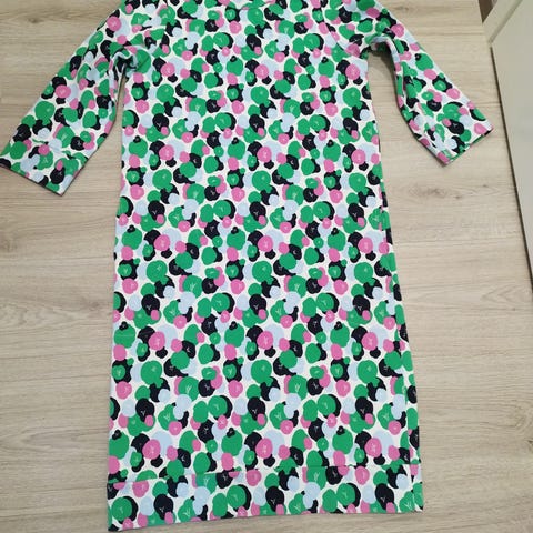 Uuden veroinen Nanson mekko. Materiaali on kevyttä miellyttävän tuntuista lyocell-kangasta. Mekko on väljempää kokoa, jonka takia sopii hyvin myös M-kokoiselle.