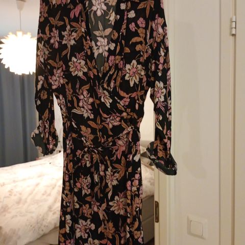Muutaman kerran käytetty mekko. 100% viskoosia. Väljä malli. Mukavan tuntuista, ohutta kangasta joka laskeutuu nätisti. Hyvässä kunnossa, ei moitittavaa.