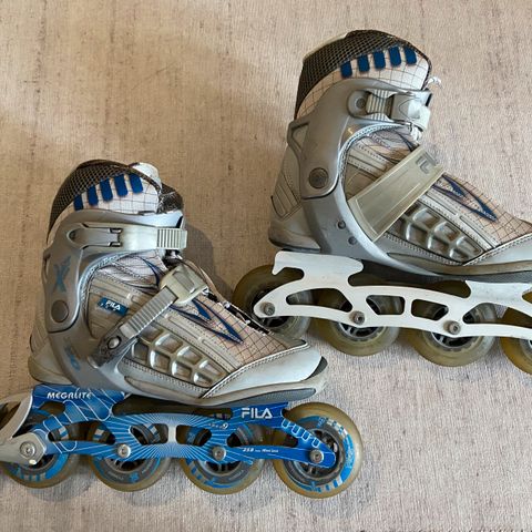 Fila 41 rullaluistimet. Muutamia kertoja käytetty ja jäänyt sitten pyörimään nurkkiin. Ehjät.