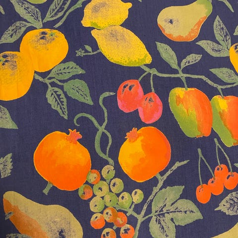 Marimekon Appelsiini kankaasta, ompelijalla teetetty. Alareunaan ja yläreunaan ommeltu vihreällä vahvistuskangasta jotta laskeutuu nätisti ja kestää verhonipsut. Toiseen reunaan kantattu siististi valkoista nauhaa. Tosi kivat roikkuessaan. Siistit verhot. Väritkin säilyneet mielestäni hyvin.