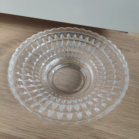 Hyväkuntoinen ruskea lasikulho, korkeus n 13 cm ja halkaisija 18 cm.