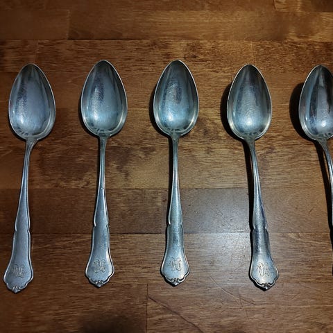 Chippendale ruokalusikka uushopeaa, Sorsakoski, 6kpl