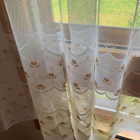 Siisti, hyväkuntoinen verho 1980-luvulta. Paksuhkoa kangasta, soveltuu mm. oviverhoksi. Kaunis beige/vaaleanruskea peruskudos ja tummanruskeita kuvioraitoja.