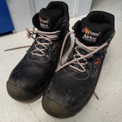 U-Power Tongue turvakengät koko 44. Läpimurtosuojatut, iskuja vaimentavat, Anti Slip. Turvakärki terästä. Vain paristi kokeillut.