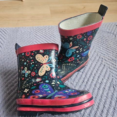 Myydään punaiset kumisaappaat. Koko 22/23. Muutoin hyvä kunto, mutta tummentumaa (näkyy kuvissa).