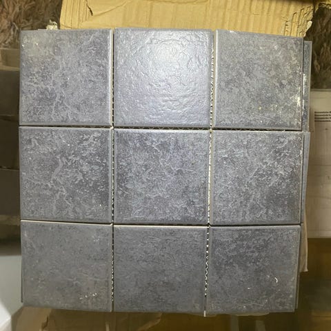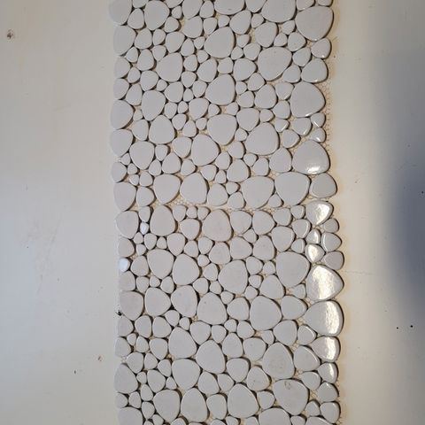 Laattapisteeltä keväällä 2025 hankittua laattaa. Mosaiikkilaatat kiinni 23 x 26 cm verkossa. Voidaan asentaa niin lattialle kuin seinäänkin.