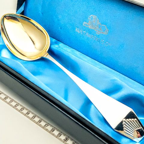 "SUOMI" 265mm hopeinen puurolusikka, hopea. Tarjoilulusikka, otinlusikka