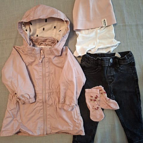 Vaatepaketti tytölle. Koko 68-74. Hyvässä kunnossa. Eri merkit: lindex, inexto, kiabi etc.