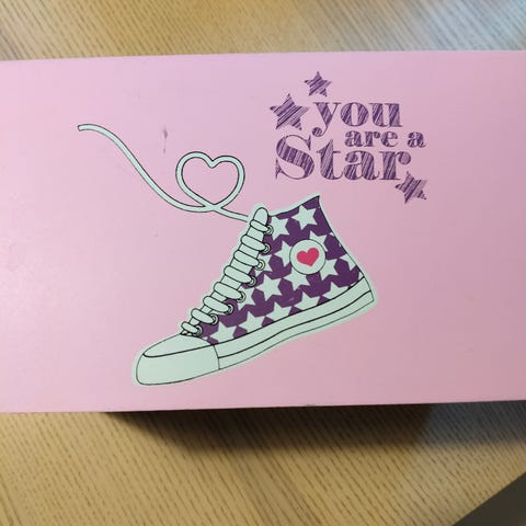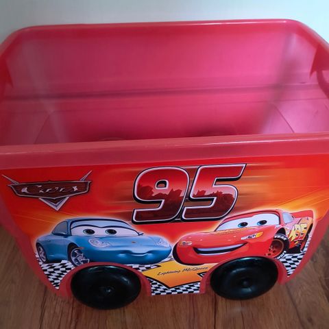 Lelulaatikkona meillä toiminut, nyt joutaa seuraavalle. Yhdestä kulmasta pieni pala lähtenyt, mutta ei vaikuta käyttöön. Koko 39x29x23cm.