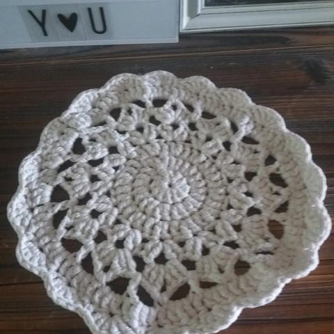 Myydään kuvan vaalean harmaa virkattu liina, halk 19cm. Hinta 3 eur. (postitus esim. kirjekuori)