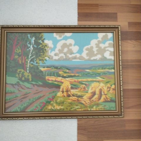 Erittäin hyvän kuntoinen kaunis käsin ommeltu ristopistotyö.