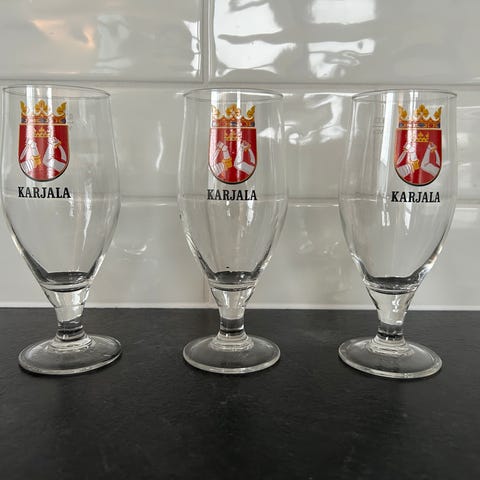 6kpl Karjala olut tuoppeja, 0,5L vetoisuudella,Tuopit on käyttämättömät. Keräily kamaa