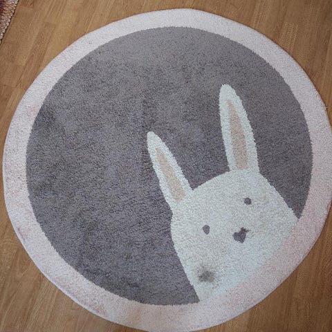 Myydään tyylikäs ja hyväkuntoinen 100 % puuvillaa oleva pyöreä lastenhuoneen kudottu matto. Luonnonvalkoinen/musta. Halkaisija 135 cm.