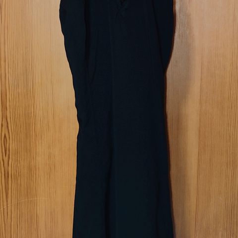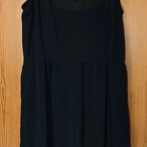 Musta olkaimeton hihaton mekko jossa smokkirypytys yläosassa.