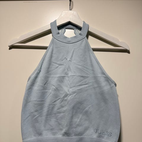Lohenpunainen, hihaton paita koossa L. Paita on tilattu aikoinaan Zalandosta, mutta jäänyt sittemmin käyttämättä.