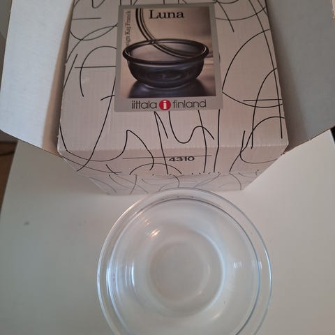 Kaj Franckin suunnittelemat Luna lautaset 15 cm. Kirkas lasi. Myydään 6 kpl 10 eurolla. Lautasia on yhteensä 20 kpl, jos joku haluaa useamman