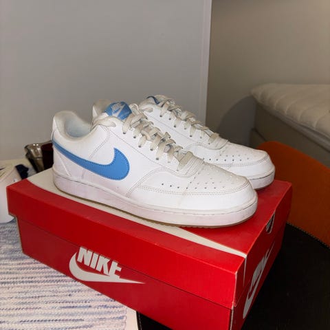 Siistejä ja ehjät. Ei tahroja. Kengännauhat ovat vähän kellertävät ja pohjallisten valkoisetreunat ovat myös vähän kellertävät.
