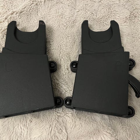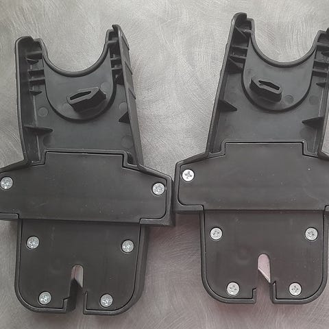 Adapterit joilla saa liitettyä turvakaukalon rattaisiin.