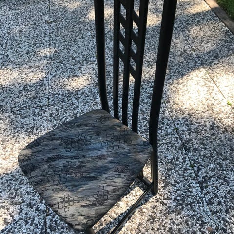 Musta puinen tuoli. Selkänoja joustaa hieman, voi vaatia tuunaamista. Nouto.