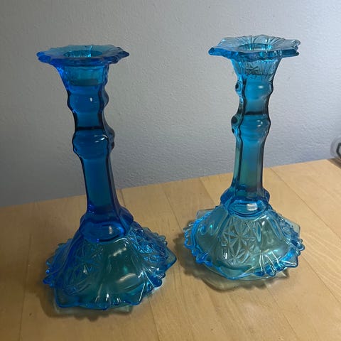 Vintage-tyylinen Koboltin sininen lasinen kynttilänjalka 90luvulta