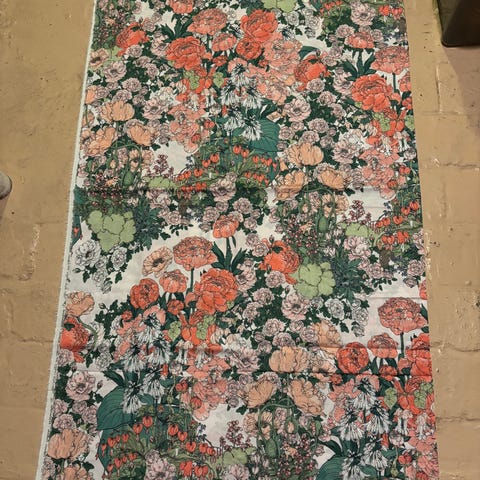 Myydään käyttämätön Nuppu Print Companyn Kevätlaulu-kangaspala, 0,9m. Leveys 1,5m. Olen joskus aikoinaan pessyt tämän ja saumuroinut reunat, mutta sen jälkeen kangas on jäänyt kaappiin säilytykseen. Kangas on ohut puuvillakangas.