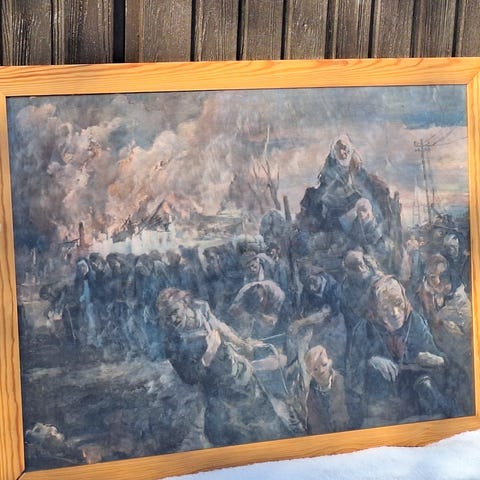 Lasitettu ja kehystetty aidolle papyrukselle maalattu teos