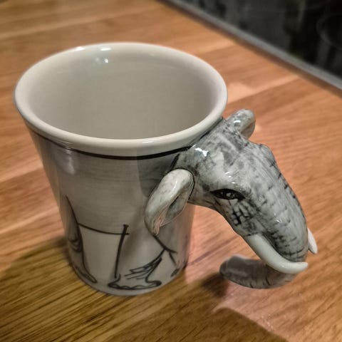 Norsu - kuvioisia kahvimukeja 2 kpl, jääneet käyttämättä. Valkoiset, korkeus 9.5cm, halk 7.7cm. Toimitus metroasemille tai toridiilipostitus. Hinta 2e/kpl, myyn molemmat yhtä aikaa.