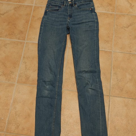 Vaalea denim. Hyväkuntoiset. Edessä joku ihan pieni haalea tahra, jota en nyt kuvatessa löytänyt.
