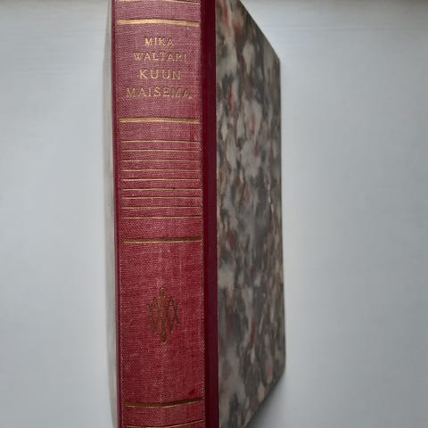 Mika Waltari Yksinäisen miehen juna, kovakantinen ilman paperikansia, WSOY, s. 294. Sisäsivulla ex Libris merkintöjä, takakannessa lyijykynä jälki, etukannessa tahraa, selkämys osittain irronnut