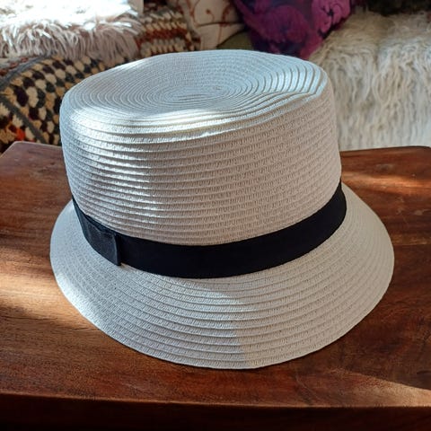 Myydään pari kertaa käytetty A+more -merkkinen kesähattu. Ei käytönjälkiä. Materiaali paperia.